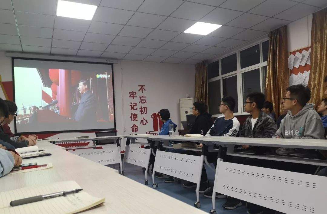 10月10日晚,皇冠足球 2016级、2018级本科生党支部在骊山校园14-319会议室召开党员大会进行“不忘初心、牢记使命”主题教育集中学习活动,重点学习习近平总书记在庆祝中华人民共和国成立70周年大会上的重要讲话精神,党支部全体成员参加了会议。