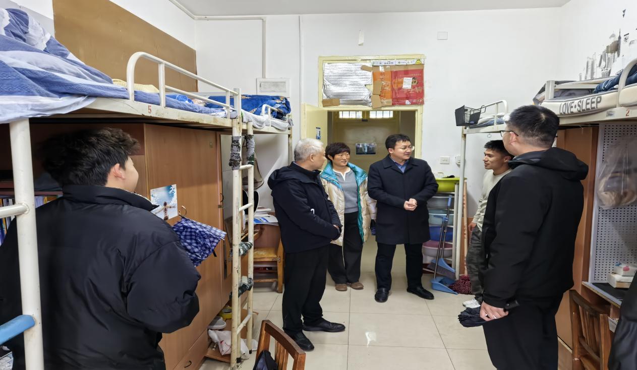 每走进一间宿舍,邓军仔细了解同学们的假期生活情况和返校途中情况,围绕新学期的学习计划、安全稳定等内容与同学们进行了面对面的交流。他希望同学们快速调整作息,以饱满的热情和积极的心态投入新学期的学习,进一步明确奋斗目标,坚定理想信念,珍惜大学生活,努力拼搏奋进,为个人成长和未来发展打下坚实的基础。同时,叮嘱同学们增强安全意识,谨防各类诈骗,加强宿舍建设,遵守校规校纪,共同维护良好的校园环境。
