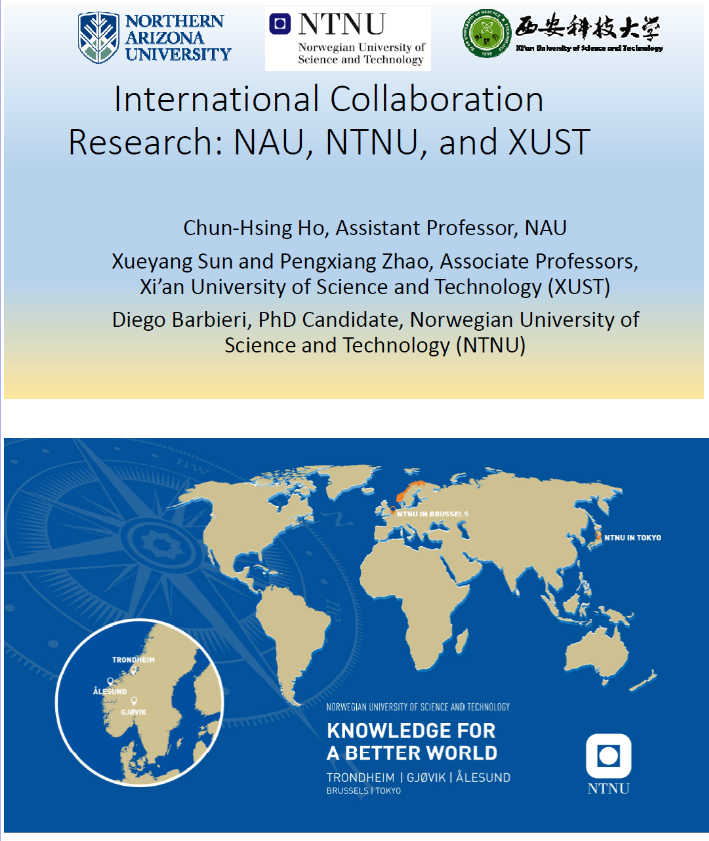 会议期间,我院安全工程系教师赵鹏翔副教授与北亚利桑那大学工程学院何俊兴副教授、挪威科技大学Diego Maria Barbieri博士共同做了题为International Collaboration research projects:NAU, NTNU, and XUST的报告。赵鹏翔副教授着重就学校介绍、合作科研期间成果体现及后期合作规划等内容做报告,在场各位学者及学生代表产生了浓厚的兴趣,获得了与会人员一致好评。
