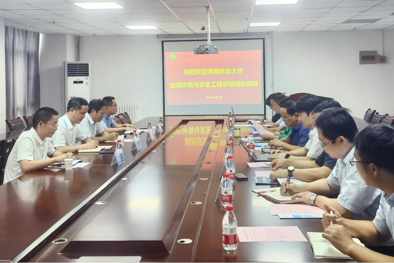 8月15日下午,湖南科技大学资源环境与安全工程学院党委书记李树清教授、副院长李青锋教授、安全工程系主任游波副教授、应急技术与管理系主任李敏副教授一行4人莅临我院进行调研交流,座谈会在雁塔校区创新大楼2216会议室举行,会议由执行院长罗振敏主持。我院党委书记刘文刚、副院长肖鹏、曹鸿、马砺,安全工程系副主任易欣、应急技术与管理系主任郑学召及教师代表参加了座谈会。