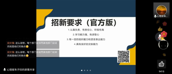 随后,召开了2022级新生线上答疑会,成连华解答了新生关于专业培养方案、考研方向、就业行业等专业学习的相关问题。
