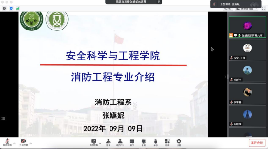 9月9日,安全工程系主任王莉、消防工程系主任张嬿妮、应急技术与管理系主任郑学召分别从培养目标、课程体系、师资力量、平台与资源、未来研究方向等方面进行专业介绍,为学生了解学科专业、增强专业认同奠定基础。