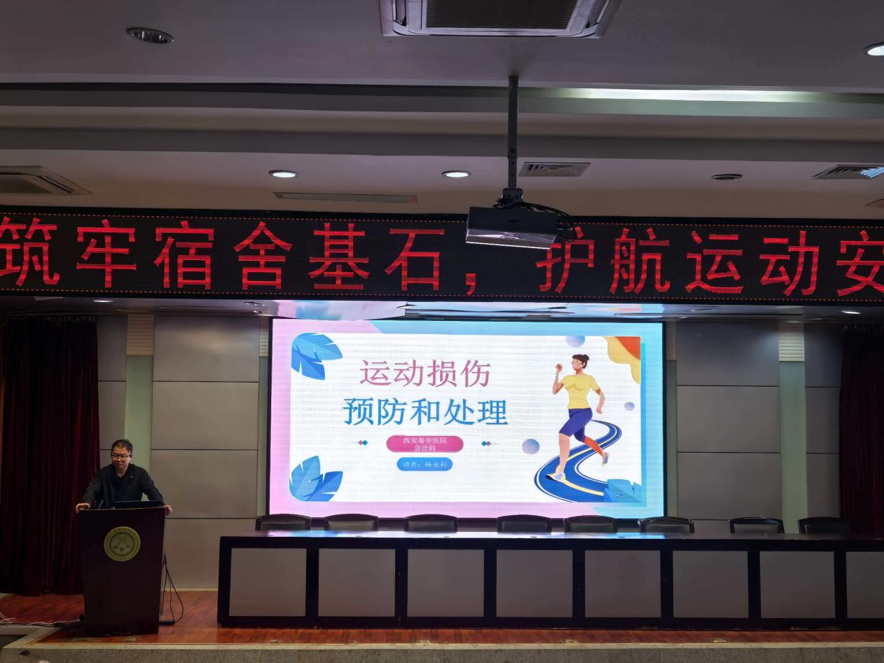 在临潼校区骊山校园图书馆二楼报告厅举行“宿舍管理与运动会安全教育”专题报告会。学院党委副书记林伟,团委书记、学生工作办公室主任周学刚,本科生各班班长、团支书,各宿舍舍长,以及全体参赛运动员齐聚一堂,共同接受了一场系统、生动、深刻的安全教育。报告会由周学刚主持。