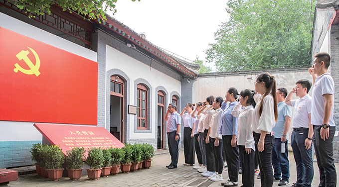在八路军西安办事处纪念馆,西安科技大学的学生党员重温入党誓词 视觉中国/供图