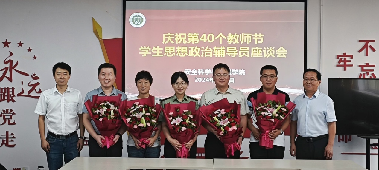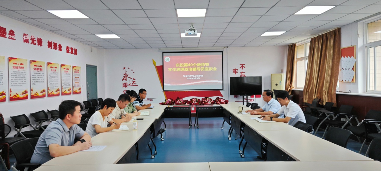 在临潼校区骊山校园14号教学楼320室召开庆祝第40个教师节暨学生思想政治辅导员座谈会。会议由学院党委书记刘文刚主持。