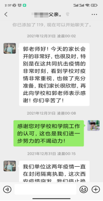 学院将认真整理总结家长会中各位家长提出的问题,为学生疫情防控和教育管理服务提供借鉴指导,并将继续探索家校共育新载体,持续搭建好特殊时期家校沟通桥梁,打好这场战“疫”的“持久战”。