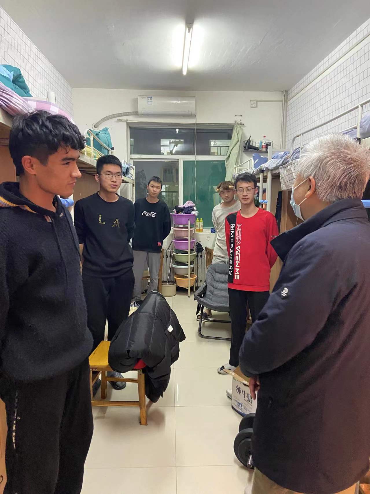 新年来临之际,为进一步落实疫情防控期间学生教育管理的各项措施,深入了解学生思想动态和学习生活实际,教育引导学生科学防疫、健康成长。12月31日晚上,副校长邓军深入临潼校区骊山校园皇冠足球
