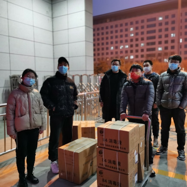 全体在校研究生捐赠了口罩三箱共计6000只、消毒水五箱共计150桶等防疫物资,助力安全学子同心战“疫”。