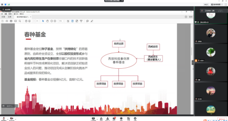 在煤矿安全、应急救援、城市安全等方面取得成果,介绍了秦创原“春种基金”成立以来取得成绩,并就“春种基金”的申报流程及注意事项进行了详细讲解。