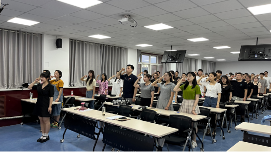在庄严的国际歌之后,由毕业生党员代表翟芳妍领誓,全体与会党员重温入党誓词。坚定有力的誓言,使每一位毕业生党员再一次接受了心灵洗礼,进一步坚定理想信念。