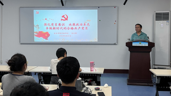学院党委书记刘文刚以“强化党员意识 永葆政治本色 争做新时代的合格共产党员”为题,为毕业生党员讲授了一堂生动的党课。他首先对《中国共产党章程》、《中国共产党发展党员工作细则》《中国共产党党员教育管理工作条例》和《中国共产党纪律处分条例》等重点内容进行了解读,以增强党务知识,强化党员意识,并对全体毕业生党员提出希望和要求。他希望全体毕业生党员无论是继续升学深造还是直接进入工作岗位,都要不忘入党初心,提高政治站位,强化党员意识,在人生的新征程上,始终牢记报效祖国和服务人民,为母校争光、为党旗添彩。一要珍惜在校生活,从严要求自己,做一名文明离校的党员;二要加强党性修养,坚定理想信念,做一名政治坚定的党员;三要践行党的宗旨,厚植为民情怀,做一名勇于奉献的党员;四要正确面对挫折,敢于迎难而上,做一名快乐生活的党员;五是严格要求自己,正确行使权利,做一名清正廉洁的党员。