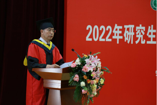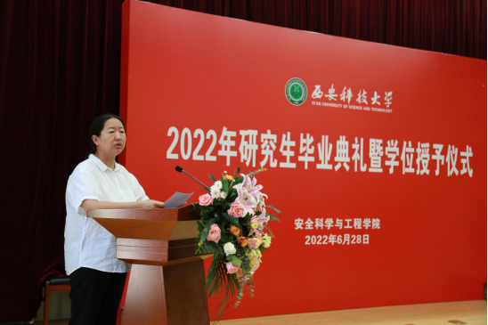 在雁塔校区北院主楼报告厅举行2022届研究生毕业典礼暨学位授予仪式。学院党政班子成员、教授委员会委员、导师代表、研究生培养办公室主任、研究生辅导员和2022届研究生参加。副院长成连华主持毕业典礼暨学位授予仪式。