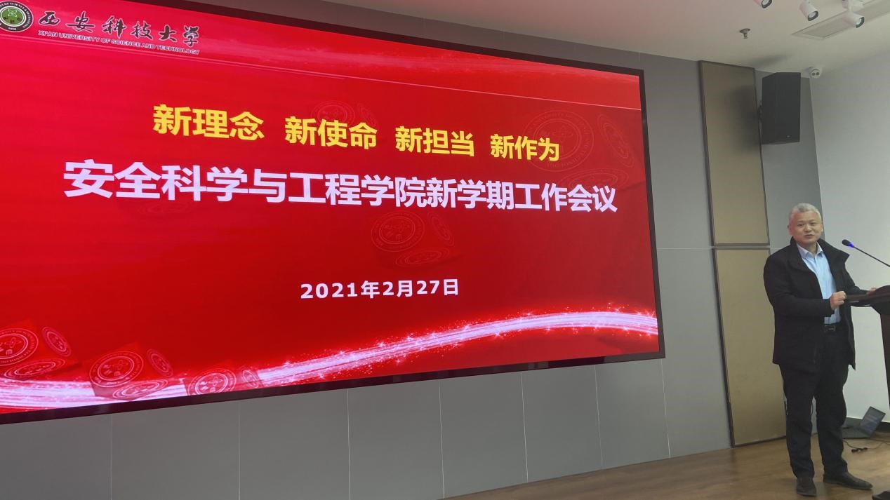 全体教职员工脚踏实地、埋头苦干,完成好今年的目标任务。他要求,一是要以问题、目标和结果为导向,积极开展学院综合改革,形成可复制、可推广的研究教学型学院改革方案;二是要积极围绕国家发展重大需求,关注“十四五“重点研发计划项目,积极开展项目和基金申报工作;三是要牢牢把握人才是第一资源,人才是发展的关键,注重人才的引进和培养,力争在国家级“四青”等高层次拔尖人才的引培上有所突破;四是要积极开展学科交叉融合,大力实施“安全+”;五是在新学期伊始,开好局、起好步,真正把工作落细、落深、落实,把最多的精力、最多资源投入到教书育人、立德树人上来,以学生为本,以最大热情、最大决心为西安科技大学发展和建设贡献更多的智慧和力量。