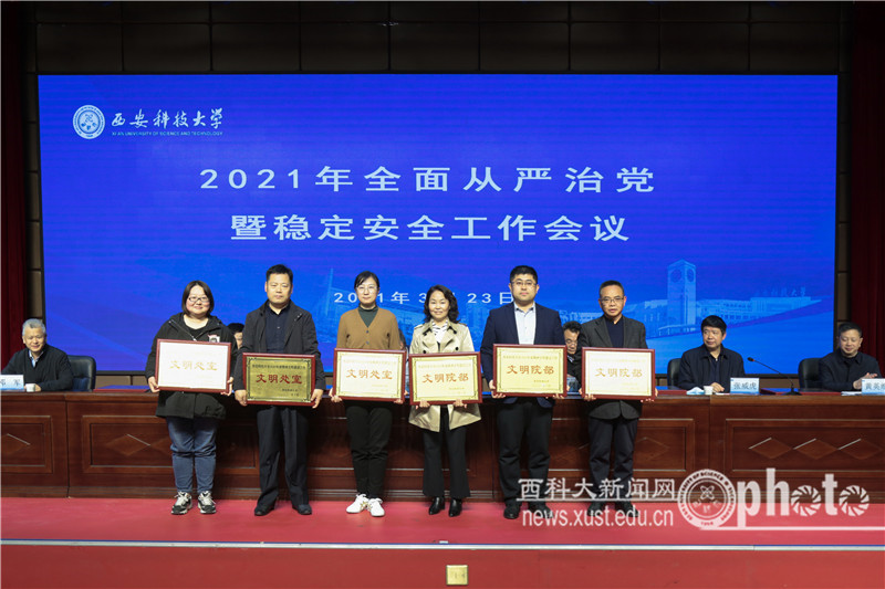 喜获2020年精神文明建设“文明院部”和宣传工作“先进集体”荣誉称号,闫黎东喜获宣传工作先进个人。来兴平代表学校党委与分党委(党总支)代表、一级风险点部门负责人及所属基层党组织负责人代表签订了2021年稳定安全责任书和消防安全责任书。