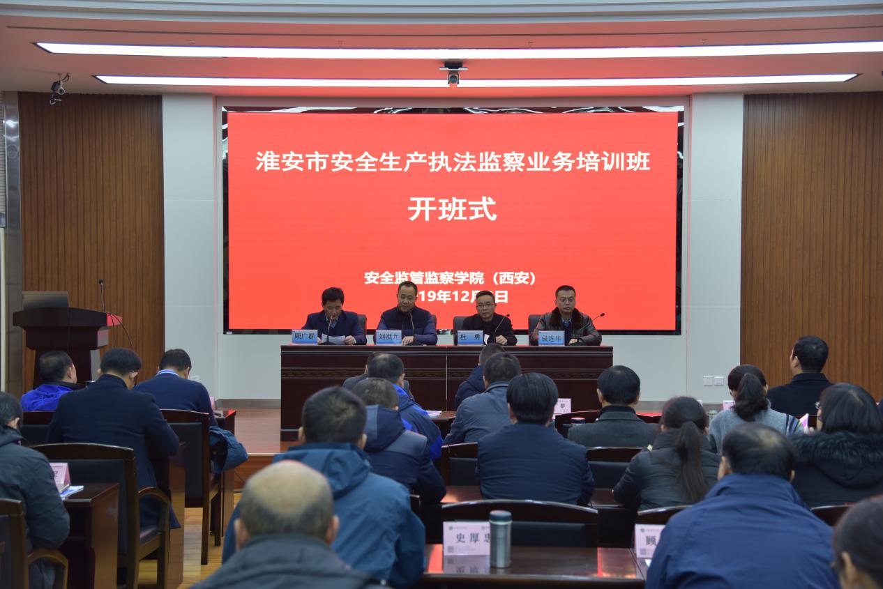 12月2日上午,江苏省淮安市安全生产执法监察业务培训班在西安科技大学雁塔校区开班。本期培训班由江苏省淮安市应急管理局委托,安全监管监察学院(西安)承办。淮安市应急管理局副局长刘洪九、市监察支队政委顾广群,安全监管监察学院(西安)党委书记杜勇、副院长成连华以及来自淮安市应急管理系统的76名学员参加了开班式,开班式由顾广群主持。