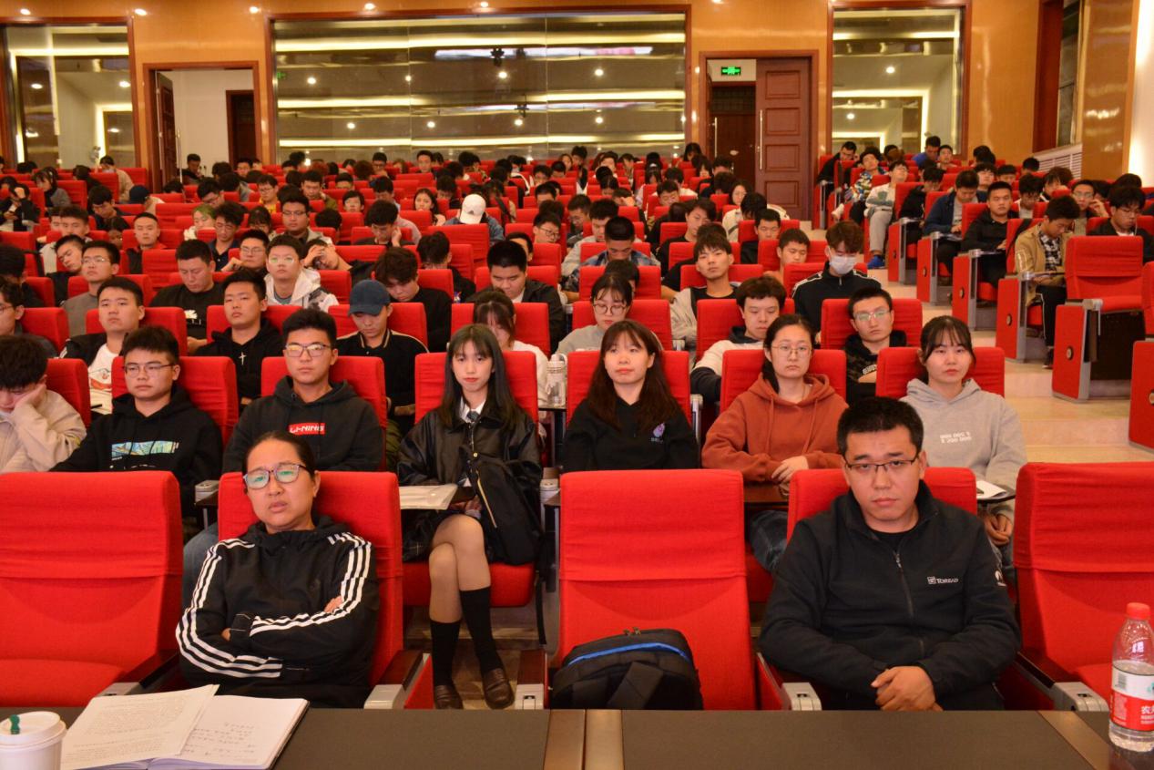 党委副书记田园,辅导员曹月、袁刚和入党积极分子、本科生代表共二百余人聆听报告,报告会由田园主持。长安大学马克思主义学院学术委员会主任刘吉发教授作“后疫情时代大学生的责任担当”主题报告。
