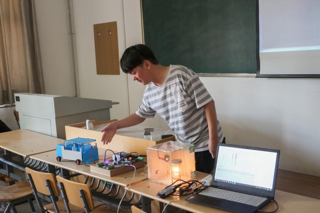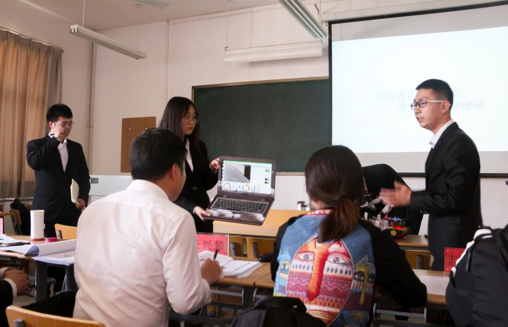 比赛中,各参赛队伍通过PPT讲解和实物展示对作品的科学性、创新性、可行性、实用性进行了详细阐述,评委老师在听取各组负责人的汇报讲解后,对各组提出了合理的建议和意见。