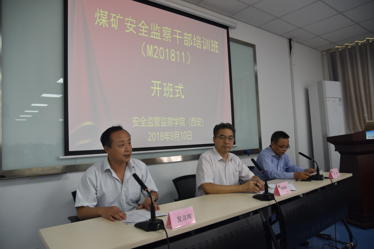 会议由安全监管监察学院(西安)党委书记杜勇主持并进行了班务安排。副校长李树刚代表学校致辞,对培训班在全体学员表示热烈欢迎,并向学员们简要介绍学校概况、办学特色及安全监管监察学院(西安)的建设发展情况。吉林煤监局安人事培训处副处长孔庆峰代表学员进行了发言,表示将认真贯彻国家安全监管总局精神,提高思想认识,端正学习态度,树立良好学风,遵守培训班纪律,完成好学习任务,确保学习实效,为进一步做好煤矿安全监管监察工作做出贡献。