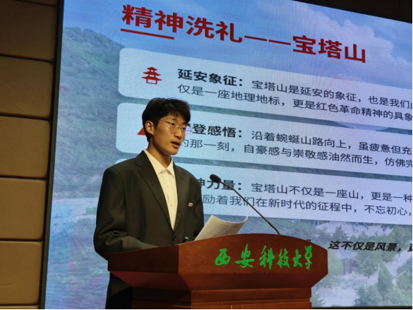 宣讲会在庄严的氛围中拉开序幕。7组赴延安参加研学的师生代表依次上台,分享他们的所见所闻、所思所悟。教师代表林伟、宋爽在宣讲中,阐述了将红色基因融入学生管理、教育教学的思考;学生代表朱信橙、林千渝、李思彤、罗乐、孔瀚民等同学,分别围绕“追寻红色足迹,汲取奋进力量”、“传承延安精神,忆苦思甜”、“到延安去,感受延安精神”、“圣地研学悟初心,传承精神勇担当”、“延安行红色心强国志”等主题,生动讲述了在革命圣地的感悟与成长。他们的汇报情感真挚,展现了新时代青年对延安精神的深刻理解和自觉传承。