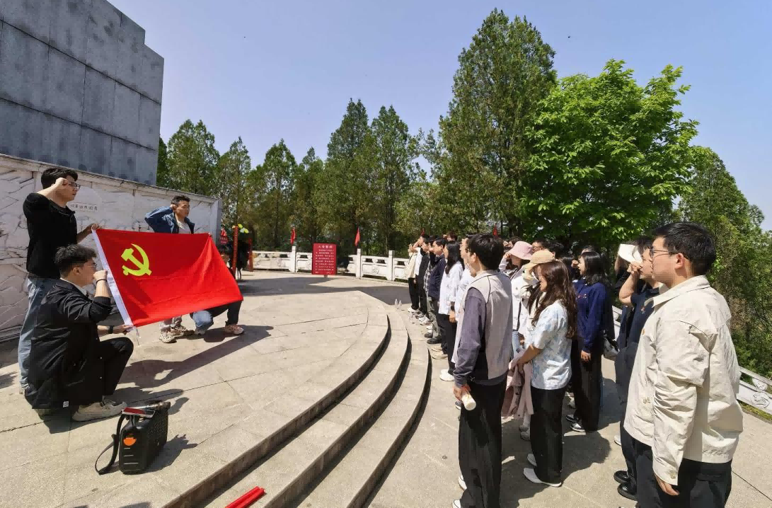 4月25日上午,党员们来到牛蹄岭战役遗址公园,认真聆听《激战牛蹄岭》的革命故事,观看《浴血牛蹄岭》相关影像资料,深入了解牛蹄岭战斗的历史背景、战斗经过和重要意义,追寻革命先辈浴血奋战的红色记忆,接受深刻的党性教育和精神洗礼。在牛蹄岭战斗纪念碑前,大家整齐列队,神情肃穆,向在牛蹄岭战斗中英勇牺牲的革命烈士敬献花篮,肃立默哀、鞠躬致敬,深切缅怀革命先烈的丰功伟绩。随后,大家面向鲜红党旗,高举右拳,重温入党誓词,在铿锵誓言中回望入党初心、坚定使命担当。