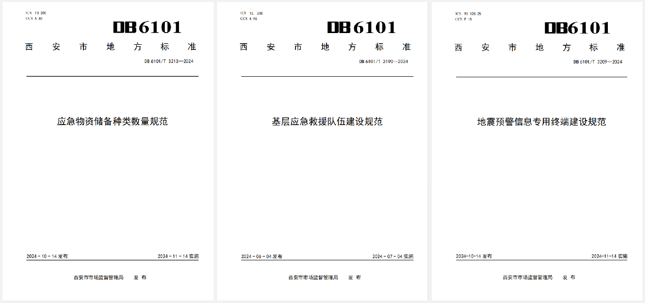 西安市应急管理标准化技术委员会是由西安市应急管理局主管,经西安市市场监督管理局批准成立的市级专业标准化技术组织,秘书处设在我校西科城市安全与消防救援中心。自2024年1月成立以来,应急管理标准化技术委员会全面收集应急管理领域相关标准,编制《应急管理标准体系明细表》,围绕安全生产、消防救援、防灾减灾救灾和综合性应急管理等四大领域,设计构建应急管理标准体系框架,完成了《西安市应急管理标准体系建设指南》编制。推进了《室内应急避难场所建设规范》、《给排水行业有限空间作业安全规程》、《消防安全管理规范 医疗机构》等5项地方标准获批立项。完成了《应急物资储备种类数量规范》、《基层应急救援队伍建设规范》、《地震预警信息专用终端建设规范》等7项地方标准编制工作并正式发布实施。面向全市应急管理系统业务骨干、企事业单位安全管理人员和镇街、社区基层管理人员,开展《社区(村)应急避难场所评价规范》、《应急物资储备种类数量规范》、《企业安全风险分级管控和隐患排查治理工作规范》等标准宣传贯彻培训4次。助力“西安市综合减灾社区建设标准化试点”获批国家第十批社会管理和公共服务综合标准化试点项目,目前正在试点社区开展标准化调研工作,“标准化+社区综合减灾”工作模式不断深化,标准化赋能基层应急管理初见成效。