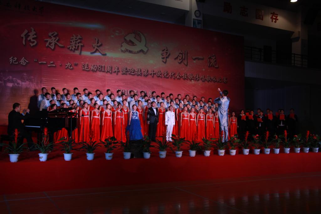12月8日晚,西安科技大学纪念“一二•九”运动81周年暨迎接第十次党代会校歌传唱歌咏比赛在临潼校区体育馆隆重举行,皇冠足球 党委书记杜勇,副院长罗振敏、林海飞、曹鸿,教师代表、全体辅导员与学生代表90余人组队代表学院参赛,最终凭借《祖国颂》、《西安科技大学校歌》两首歌曲的精彩演绎获得比赛第二名。
