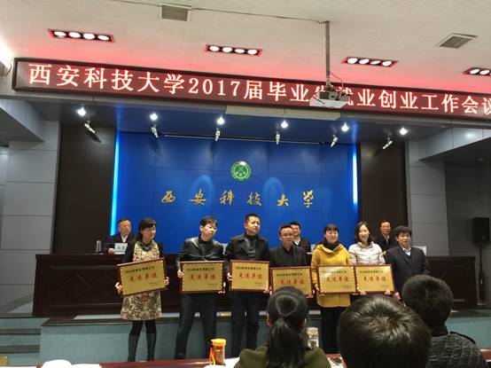 樊建武总结回顾了我校2016届毕业生就业创业工作,安排部署了2017届毕业生就业创业工作。马宏伟宣读了学校关于表彰2016年学生考研工作先进单位、就业创业工作先进单位和先进个人的通报。杨更社为获奖单位颁发了奖牌。其中我院获“2016年学生考研工作先进单位”,辅导员王倩获“2016年度就业创业工作先进个人”荣誉称号,研究生培养办公室主任刘黎获“2016年度最关心支持大学生就业创业先进个人”荣誉称号。先进单位、优秀个人代表王生全、吕勤勇、程鹏、郑选荣分别作了大会交流发言。
