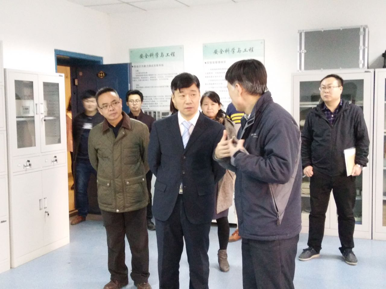 学科和科研的实验室,实地了解了教师和研究生的办公环境和条件。蒋校长指出,安全学科是学校学科的高峰,发展特色鲜明,成果突出,为学校的发展做出了贡献,希望皇冠足球