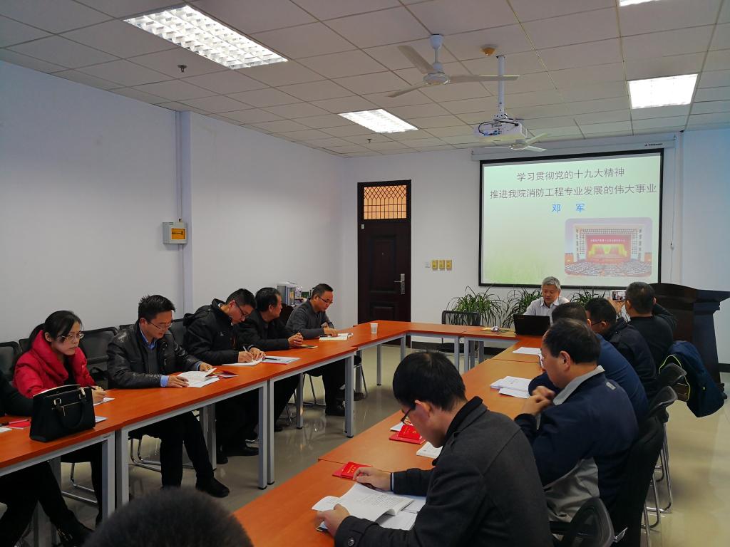 党委委员、常务副院长邓军教授为消防工程系党支部讲授了题为“学习贯彻党的十九大精神 推进皇冠足球