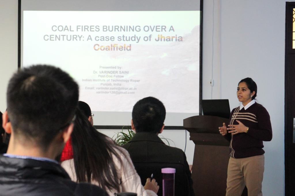 博硕士研究生参加会议,听取了报告。Varinder Saini博士大量利用她在实地考察得到的图片、数据、影像,给学生作直观的介绍及深刻的分析,让学生对煤田火灾防治方面的研究技术和方法拓展有了深入的了解。与会师生就报告内容进行了广泛的学术交流。