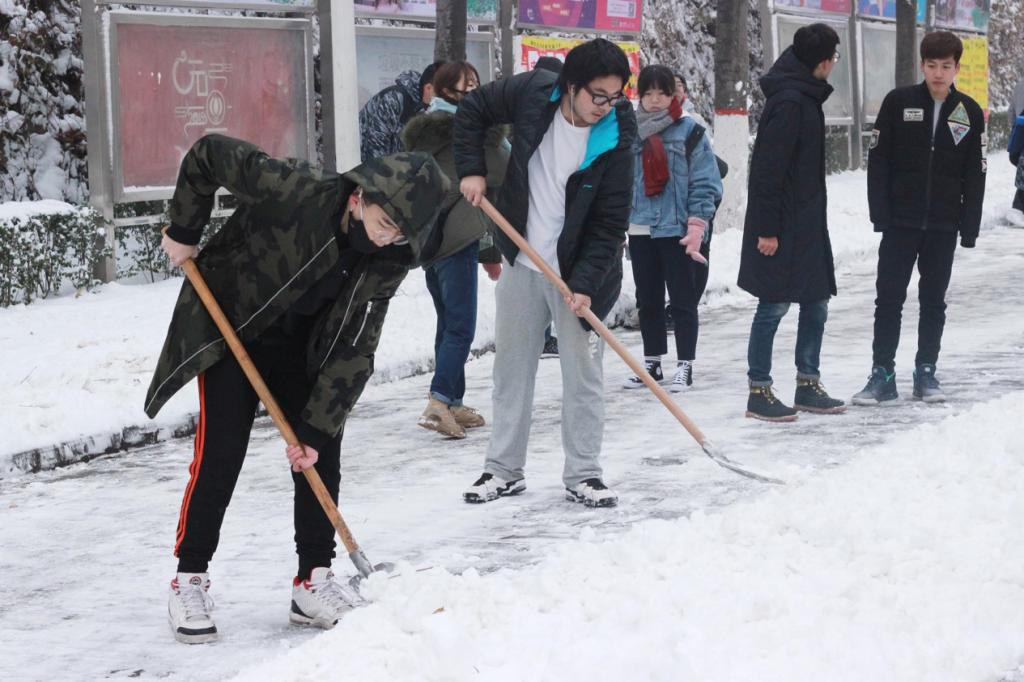 在我院师生齐心协力的努力下,为师生们的出行安全提供了良好的保障,大家劳动的热情和团结的力量让这个冬日变得格外温暖。同时也提醒各位老师和同学在欣赏雪景的同时要更加注意出行安全。