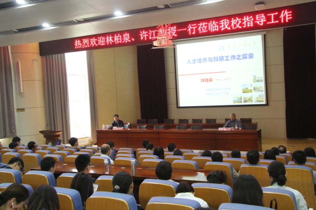 邀请做客我校“胡杨林大讲堂”,林柏泉教授和许江教授在雁塔校区主楼报告厅分别作了题为《人才培养与科研工作之探索》和《基于综合作用假说的多功能煤矿瓦斯动力致灾物理模拟试验系统》的学术报告,报告会由学院常务副院长邓军教授主持,学校部分老师及研究生百余人聆听了报告。