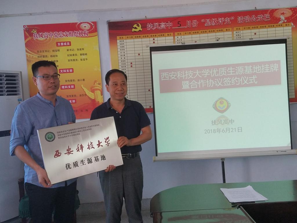 党委书记杜勇、党委副书记田园、副院长翟小伟、教务办主任李超、安全系主任成连华、安全系实验室主任王亚超、教师代表王彩萍副教授一行先后前往陕西省级示范高中扶风高中和澄城中学,与两校正式建立合作关系,签署《西安科技大学优质生源基地合作协议书》并举行了正式的挂牌仪式。皇冠足球
