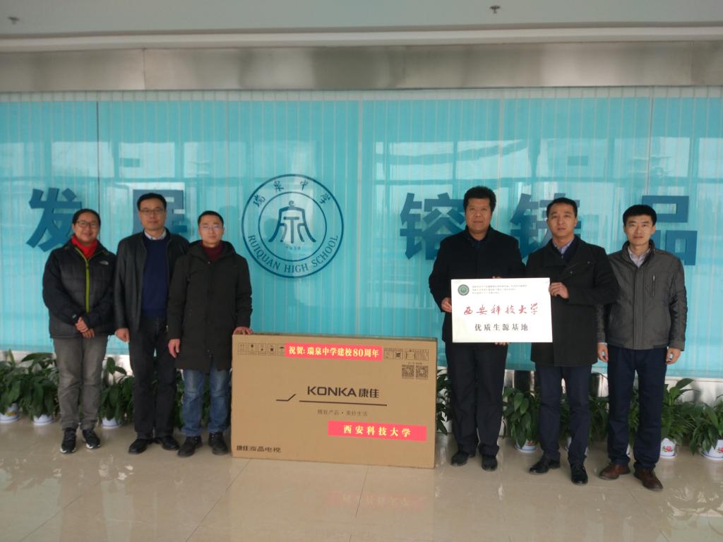 代表学校送去了贺信贺礼,祝贺瑞泉中学八十华诞。瑞泉中学创建于1938年,1951年被省教育厅确立为省级重点中学,1980年被陕西省人民政府确定为全省首批办好的10所重点中学之一,2010年被省教育厅命名为陕西省示范高中。先后荣获全国教育教学质量示范中学、全国群众体育先进单位、全国青少年普法教育先进单位、陕西省文明校园、陕西省德育工作先进单位、陕西省体育工作先进单位、陕西省艺术教育示范学校、陕西省基础教育科研项目学校等国家级、省市级荣誉百余项,承担着多项国家及省部级研究课题。年均为西安科技大学输送40余名优秀学生。
