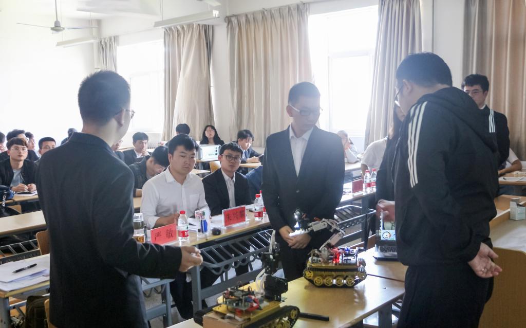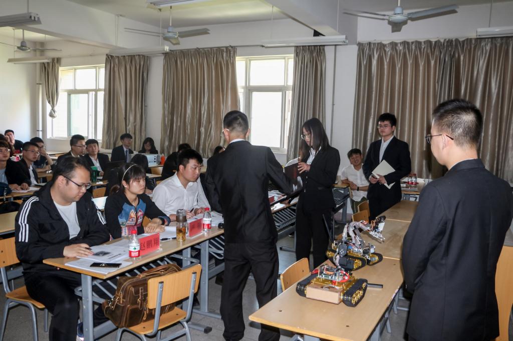 比赛中,各参赛队伍通过PPT讲解和实物展示对作品的科学性、创新性、可行性、实用性进行了详细阐述,评委老师在听取各组负责人的汇报讲解后,对各组提出了合理的建议和意见。