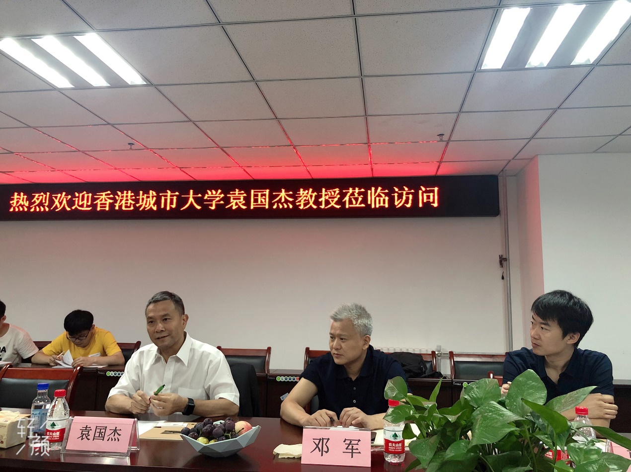 发展历程、人才培养、科学研究、学术交流以及实验室建设等情况。袁国杰教授介绍了香港城市大学(City University of Hong Kong)概况,详细介绍了工学院的师资构成、院系结构、学生培养、学术科研、发展目标、国际交流等情况。双方就科研合作、教师访问、学生访学等事项进行了座谈,参会青年教师和硕博士与袁教授进行了深入交流。座谈会后,袁国杰教授参观了学院部分创新实验室。