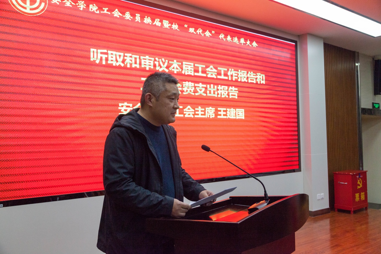 与会人员听取和表决通过了本届工会主席王建国做的《2020年度学院工会工作报告和工会会费支出报告》、大会选举办法及总监票人、总计票人、监票人、计票人建议名单。