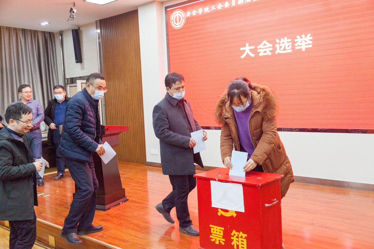 在总监票人、团委书记郭胜忠的主持下,以无计名投票和差额选举的方式,选举出新一届工会委员5名、出席学校“双代会”代表9名。