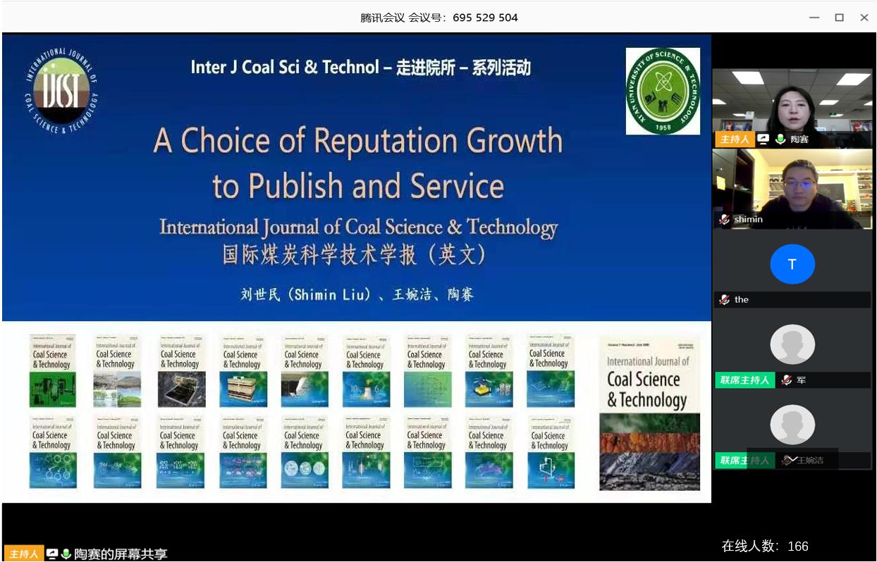 线上报告在腾讯会议召开。美国宾州州立大学博士生导师《国际煤炭科学技术学报(英文)》主编刘世民、编辑部副主任王婉洁、责任编辑陶赛,西安科技大学副校长兼皇冠足球
