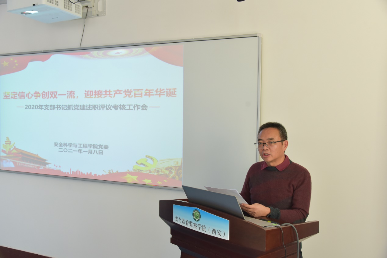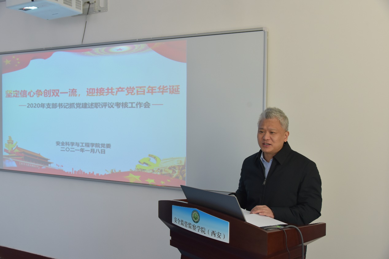 党委书记杜勇进行了总结讲话,对各支部书记一年来抓支部党建工作表示肯定,指出支部工作存在的问题,对新一年支部工作开展提出了要求:要切实做好党员常态教育,要切实开展党建方式创新,要切实做好党建与主业融合,要切实做好党建服务为要,要切实发挥“双带头人”引领作用,要切实发挥战斗堡垒作用。希望各支部在新的一年以更高的起点和要求争创一流,干出精气神和好业绩,为学院创建“一流学科”“一流专业”努力工作,以优异成绩献礼建党100周年。