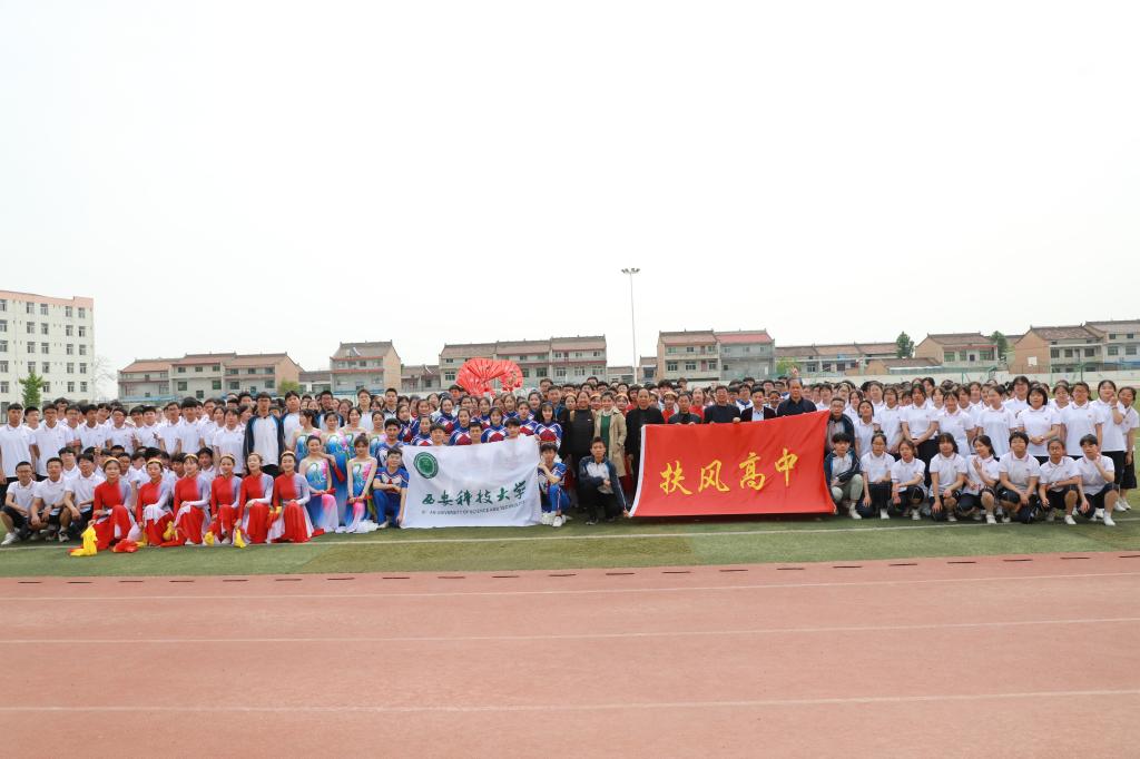 教务办主任李超和实验中心主任王亚超、校啦啦操队教练李贺一行与扶风高中书记、校长、副校长、教务处主任等进行了座谈,并参加扶风高中体育节开幕式,介绍了西安科技大学的办学历史和学科优势,我校啦啦操队参加了扶风高中体育节开幕式表演,多元化的招生宣传工作受到扶风高中校方及同学们的热烈欢迎,同时对西安科技大学的人才培养和招生宣传工作给予了高度肯定,希望双方共同帮助高中师生了解学科专业,启发学生职业生涯规划意识,让更多的学生选择西安科技大学。