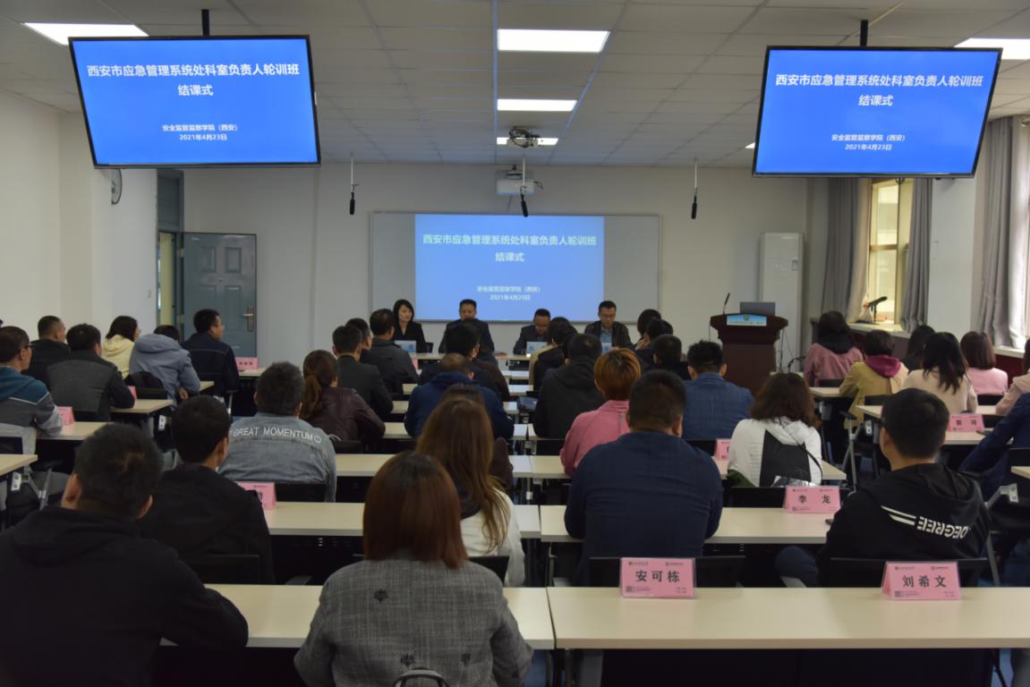 4月23日下午,为期两周的西安市应急管理系统处科室负责人轮训活动在西安科技大学临潼校区结束。西安市应急管理局副局长陈选良、教育培训处负责人廖倩,安全监管监察学院(西安)党委书记杜勇、副院长成连华出席会议。会议由成连华主持。