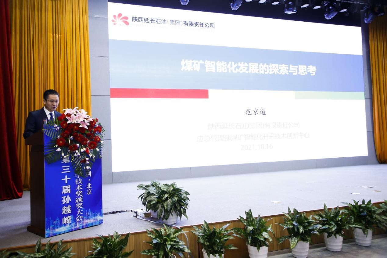 颁奖活动后,范京道以“煤矿智能化发展的思考与探索”为题,围绕煤矿智能化的重要意义、智能化开采的“黄陵模式”、智能化煤矿的“延长方案”、智能化建井,建智能矿井、煤矿智能化的展望与未来五个方面进行了交流发言。他指出,进入煤炭发展的新时代,延长石油矿业公司将践行“智能化建井,建智能矿井”新理念,探索煤矿智能化建设新领域,踏上安全高效建井新征程,追逐亿吨智能矿区新梦想。