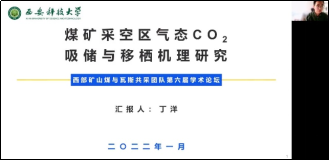 在主题报告环节,丁洋等6位团队青年教师与博士后围绕煤矿采空区CO2吸储与移栖激励机理、可视化数据的煤与瓦斯突出多物理场参数动态演化规律、低温作用后煤体官能团与瓦斯吸附能力、动静组合诱导三维含瓦斯煤动力学行为及瓦斯运移特征、抽采钻孔封孔段超声检测统计特征、基于Lasso特征选择的RNN工作面瓦斯浓度预测模型研究等主题做了引人入胜的精彩报告,与会人员就报告所涉及的碳中和方式、致灾机理、理论创新等内容展开了激烈的讨论与交流。