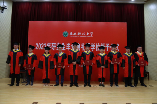 在雁塔校区北院主楼报告厅举行2022届研究生毕业典礼暨学位授予仪式。学院党政班子成员、教授委员会委员、导师代表、研究生培养办公室主任、研究生辅导员和2022届研究生参加。副院长成连华主持毕业典礼暨学位授予仪式。