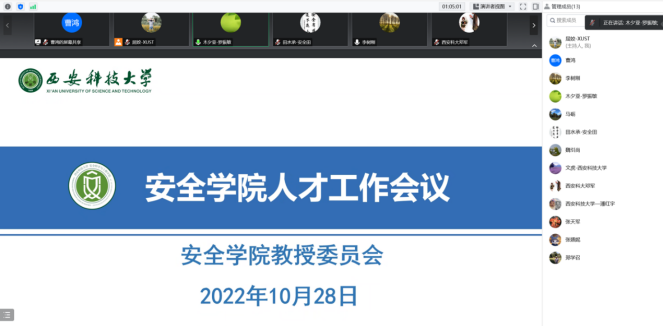 于10月28日在线召开人才工作研讨会。会议由学院执行院长罗振敏主持。副校长、安全科学与工程学科带头人邓军,学院教授委员会全体委员参加了会议。