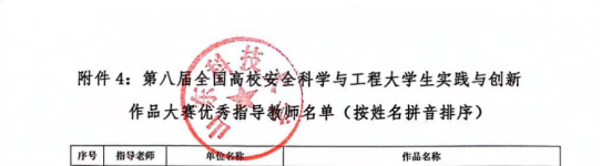 第33届全国高校安全科学与工程学术年会暨第8届全国高校安全科学与工程大学生实践与创新作品大赛共评选出全国一等奖37个、二等奖43个、三等奖59个。经过学校初选、组委会复审和现场评审,严敏副教授指导,张鑫洋、李文静、王思佳、范天乐同学完成的作品《采煤工作面瓦斯涌出态势智能预测系统》和李俊副教授指导,朱浩强、赵娜、宋婉嫣、刘雨晨同学完成的作品《基于GoogLeNet深度学习的长输油气管道安全诊断卫士》,以及杨光讲师指导,肖启鹏、朱恒、张亮 罗辉、徐立同学完成的作品《基于冷阴极气体放电的消防救援测漏电装置》等三件作品均获全国一等奖;赵鹏翔教授指导,鲁丹华、尚宇阳、李鑫、卢亚杰、权思雨同学完成的作品《瓦斯智能抽采调控平台》获全国二等奖;易欣教授指导,张擎驰、白鑫、曹萱芮、郝佳妮、张海旭同学完成的作品《矿用热舒适性防冲击服》获全国三等奖。严敏、李俊、杨光等3名老师被评为优秀指导教师,学校获优秀组织奖。