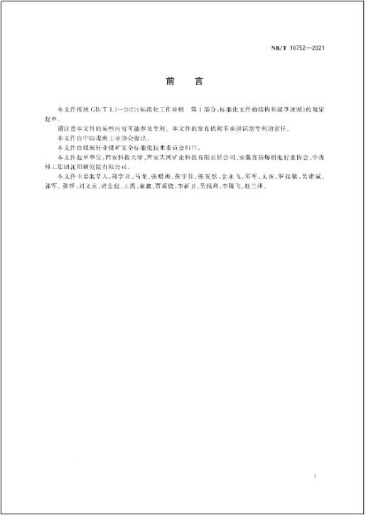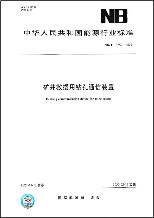 矿山应急救援团队牵头起草的中华人民共和国能源行业标准《矿井救援用钻孔通信装置Drilling communication device for mine rescue》NB/T 10752-2021。