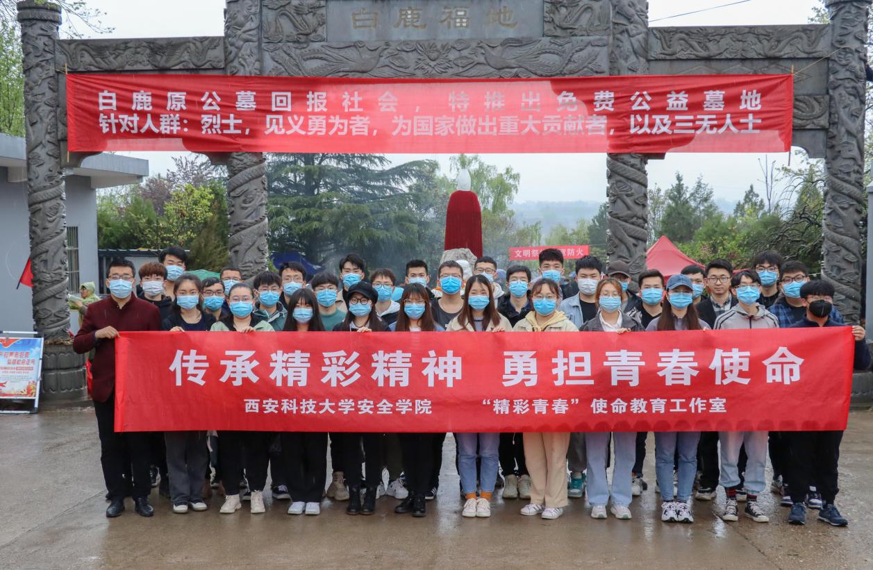 组织师生开展“传承精彩精神 勇担青春使命”清明节祭扫活动,学院党委副书记田园,学工办主任(团委书记)、“精彩青春”使命教育陕西省辅导员工作室主持人郭胜忠,辅导员王倩、曹月、袁刚,学生党员、家庭经济困难学生代表通过参观学习徐精彩先进事迹展览馆、向徐精彩雕像敬献花束、祭扫徐精彩墓等形式表达了对徐精彩教授的深切缅怀。
