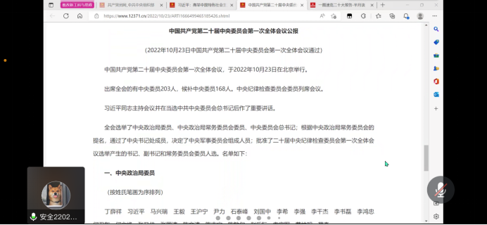 2022级硕士研究生党支部通过腾讯会议,组织全体党员学习党的二十大精神。会议由支部书记翟芳妍主持。